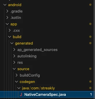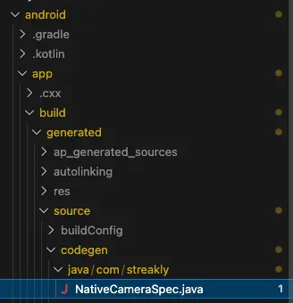 위 명령어를 실행하면 “android/app/build/generated/source/codesen/java/com/프로젝트명” 경로에 *Spec.java가 생성된다