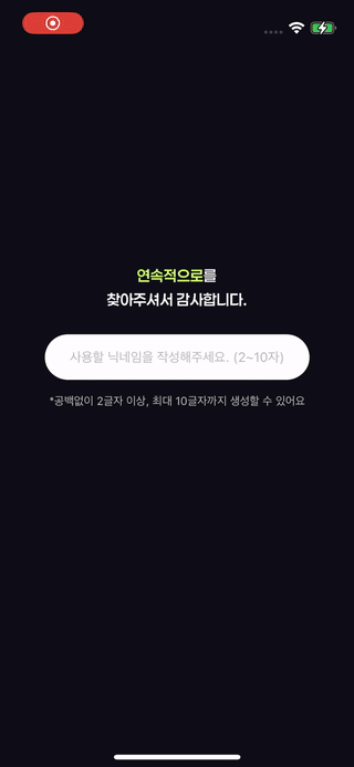 닉네임생성 스크린에서 요하는 기능