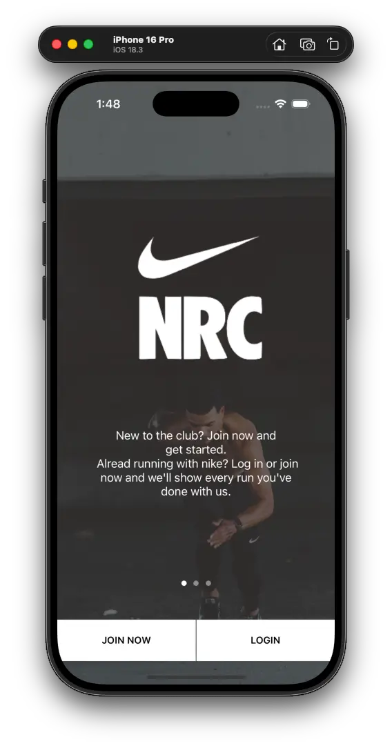 Nike Running App의 온보딩 화면을 iOS App으로 구현했다.